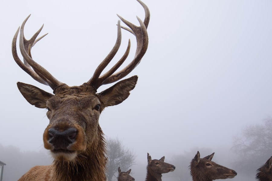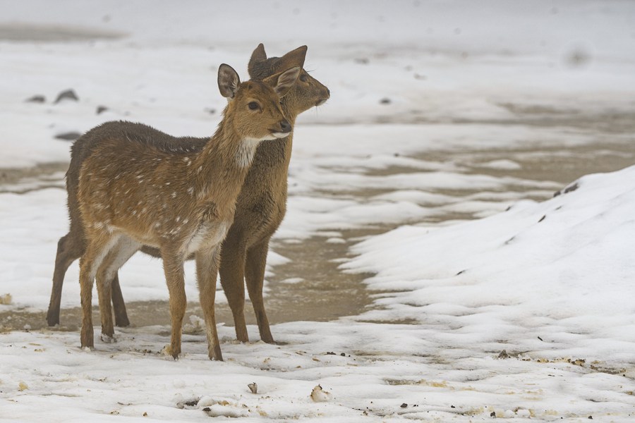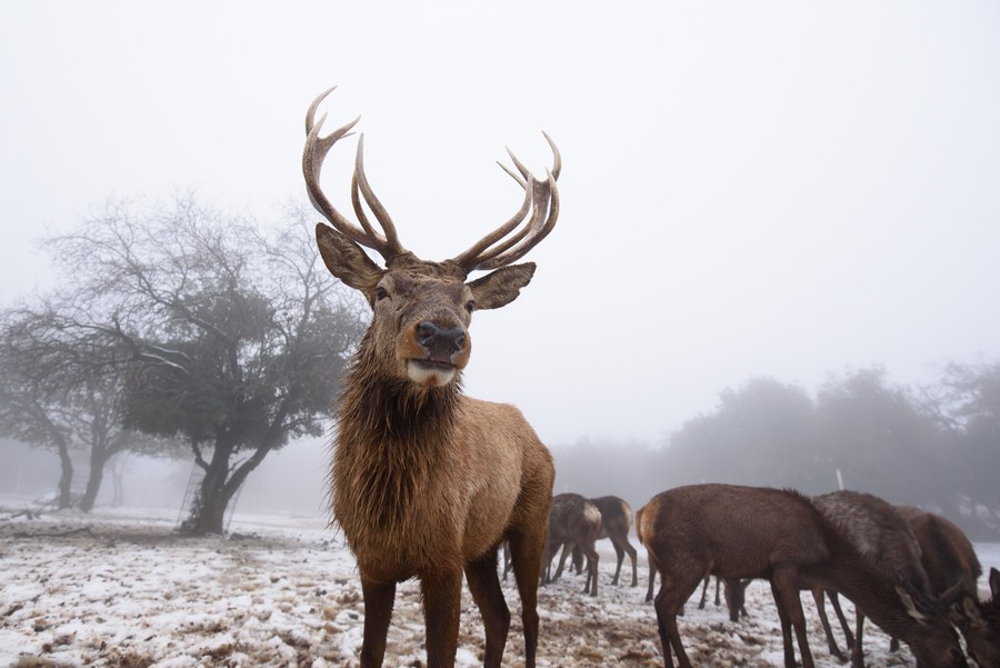 Photo taken on Jan. 19, 2022 shows reindeers at Odem Moshav in the Israel-occupied Golan Heights after a snowstorm. (Ayal Margolin/JINI via Xinhua)