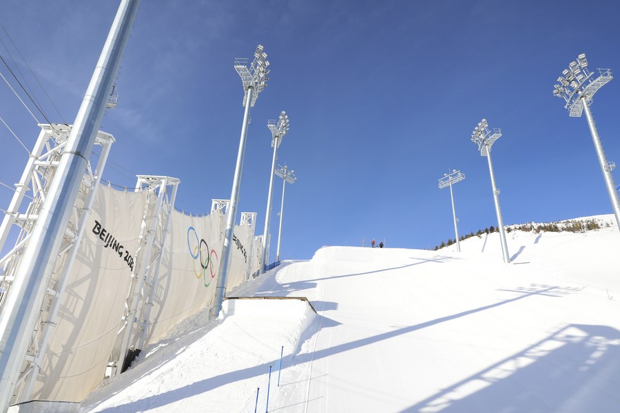 Photo taken on Jan. 19, 2022 shows windbreak facilities of the Genting Snow Park in Chongli District of Zhangjiakou, north China's Hebei Province. (Photo by Wu Diansen/Xinhua)