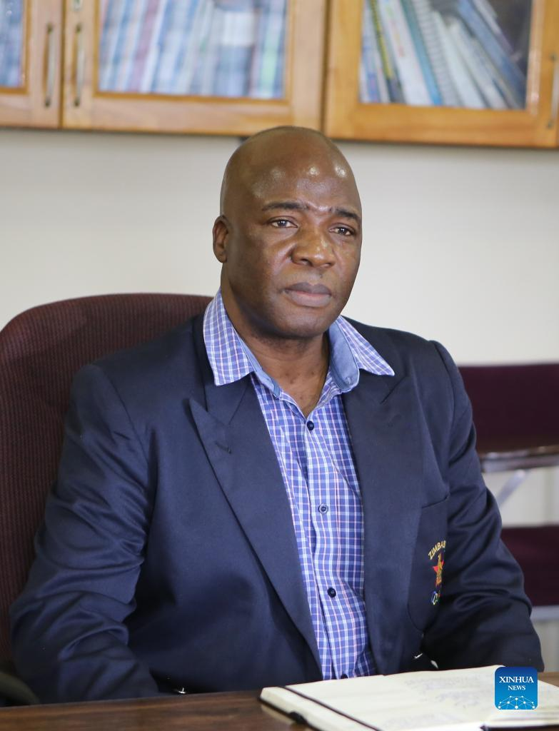 Thabani Gonye, president of the Zimbabwe Olympic Committee (ZOC), receives an interview with Xinhua in Harare, Zimbabwe, Jan. 20, 2022. (Xinhua/Zhang Yuliang)