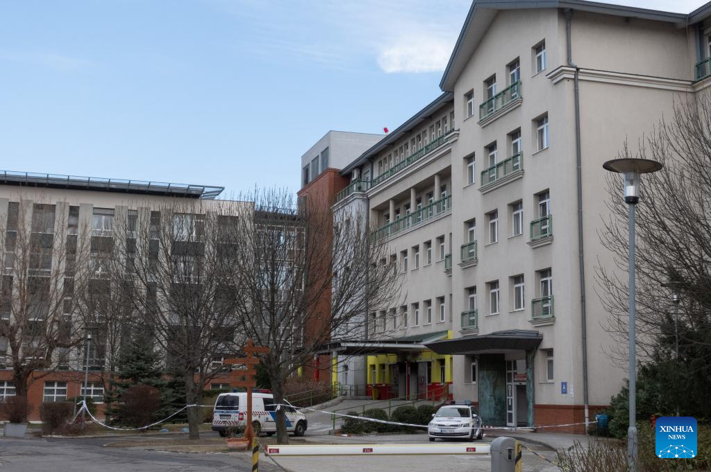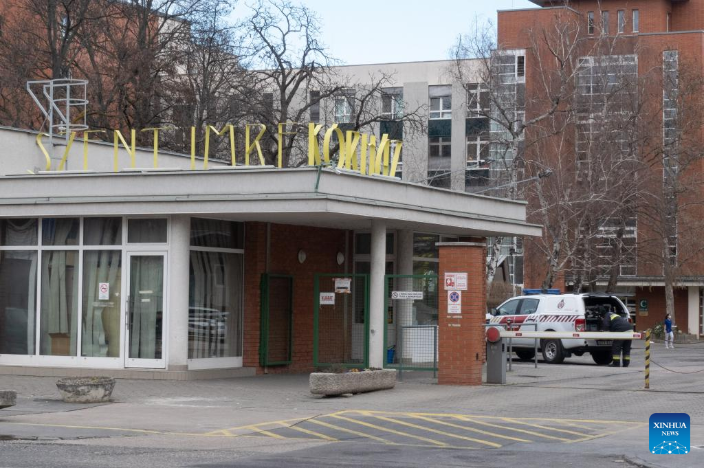 St. Imre Hospital is seen after a fire in Budapest, Hungary on Jan. 23, 2022. A fire at Hungary's St. Imre hospital has killed one person and caused two others to suffer from smoke inhalation, authorities said here on Sunday morning. (Photo by Attila Volgyi/Xinhua)