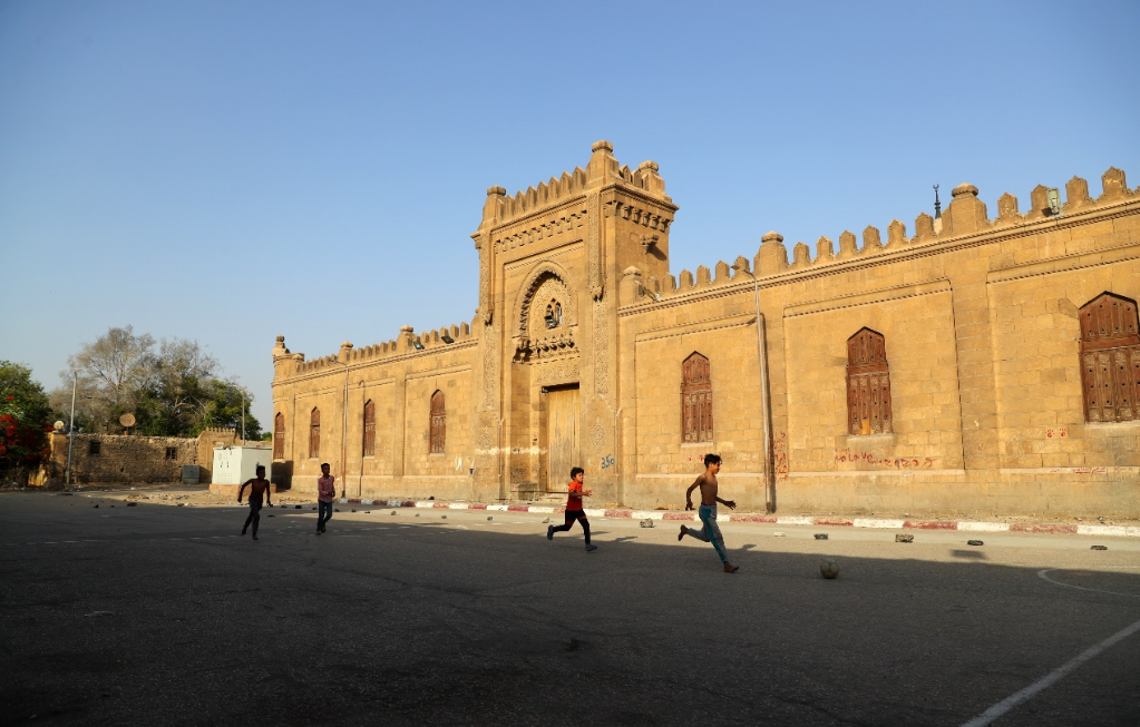 Children living in the slum play football in an open space at a slum area with cemeteries, in Cairo, Egypt, June 1, 2021. (Xinhua/Sui Xiankai)