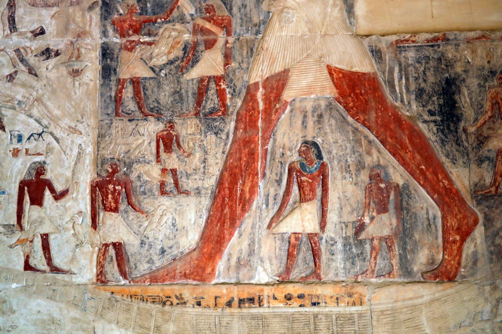 Photo taken on Aug. 3, 2021 shows a colored relief painting inside a high official tomb in Saqqara district, south of Cairo, Egypt. (Xinhua/Sui Xiankai)