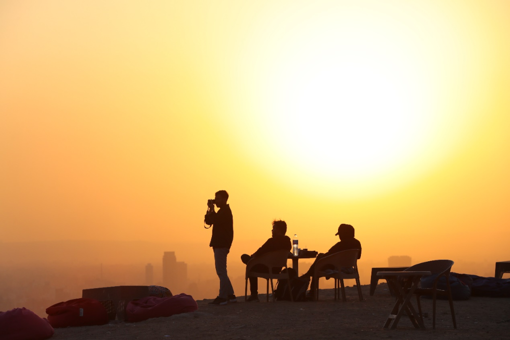 People enjoy the sunset in Cairo, Egypt, on April 11, 2021. (Xinhua/Sui Xiankai)