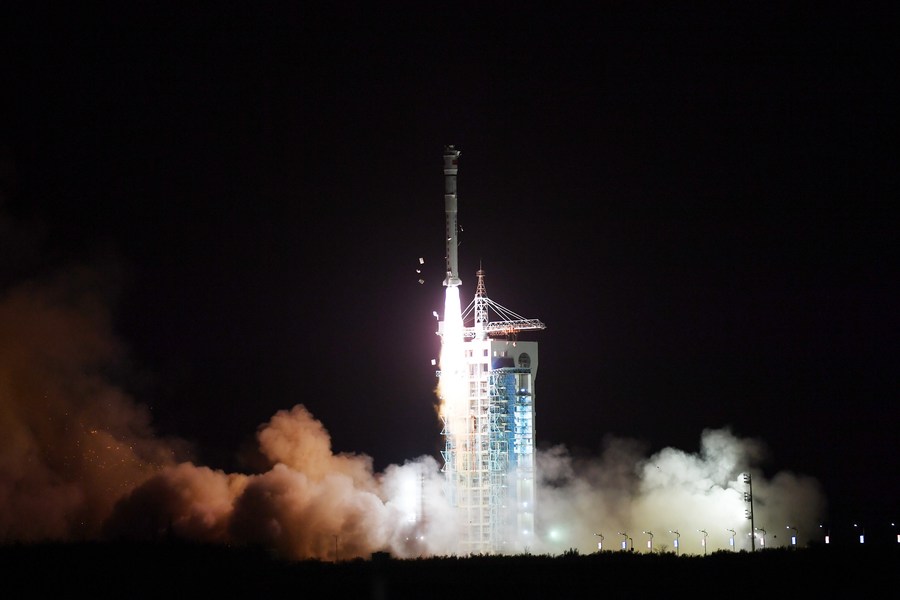 A Long March-2D carrier rocket carrying the Tianhui-4 satellite blasts off from the Jiuquan Satellite Launch Center in northwest China, Dec. 29, 2021. (Photo by Wang Jiangbo/Xinhua)