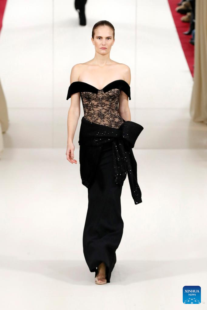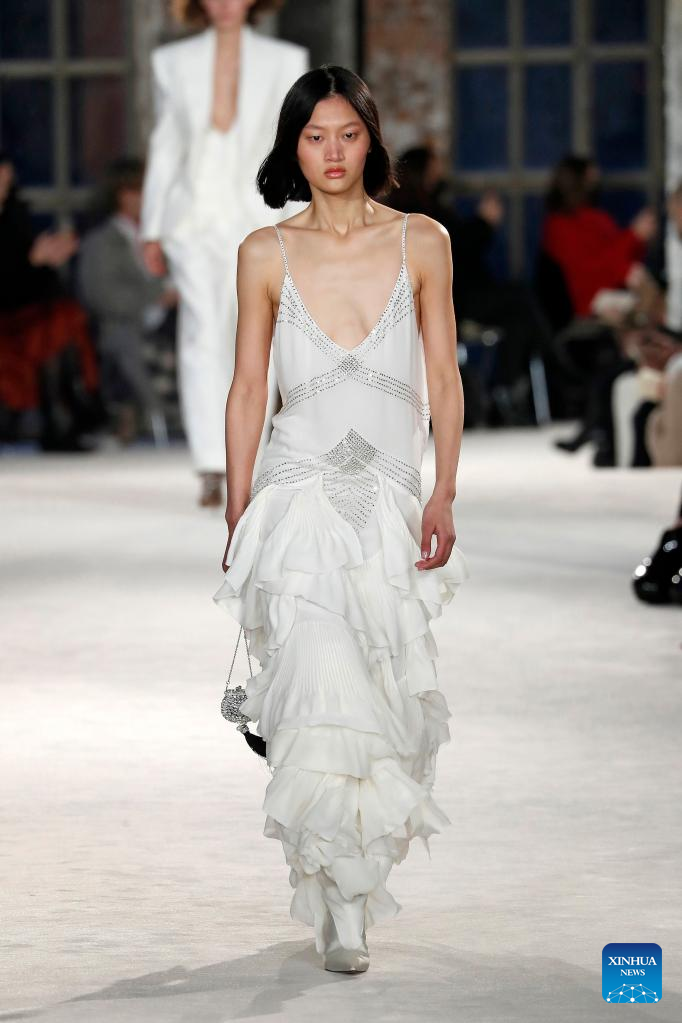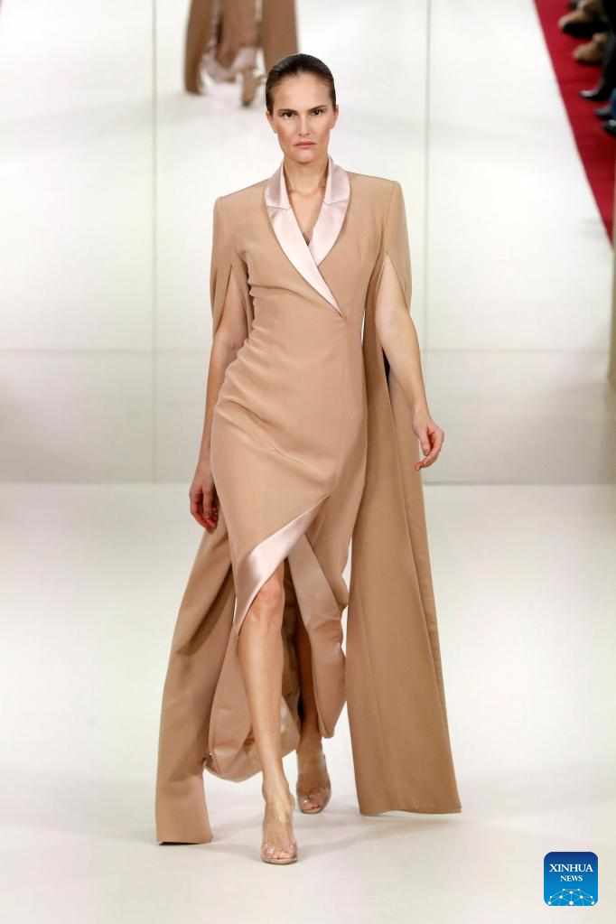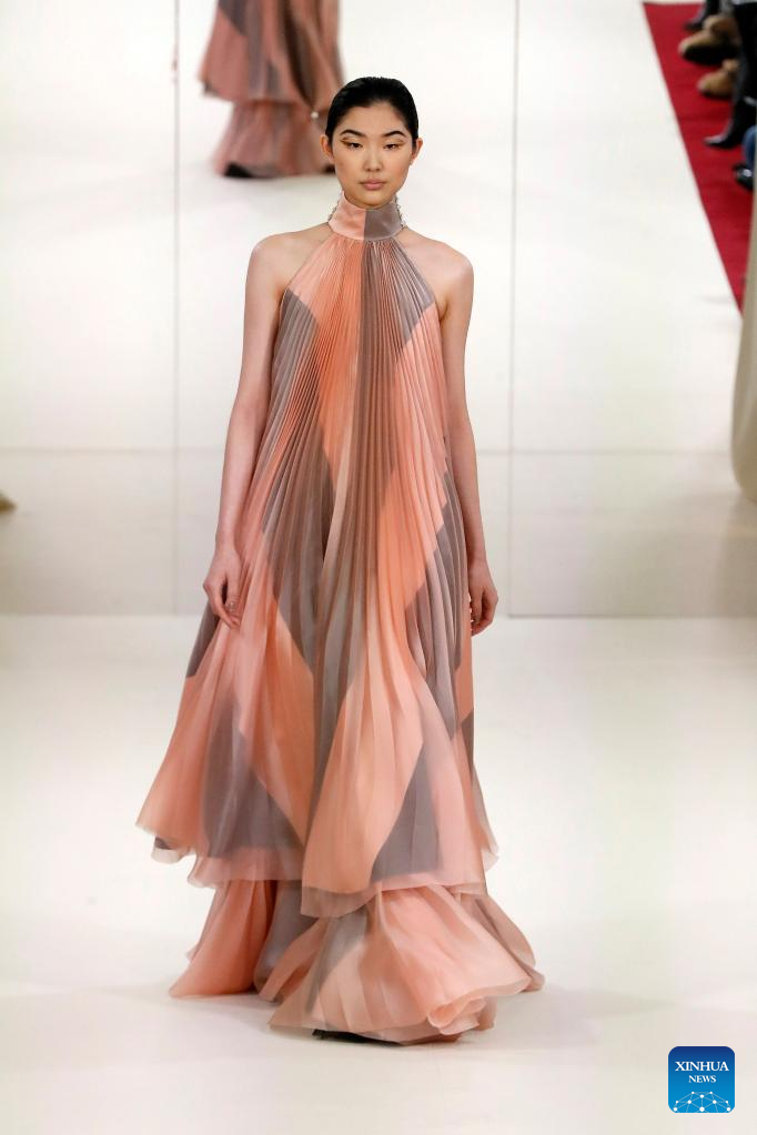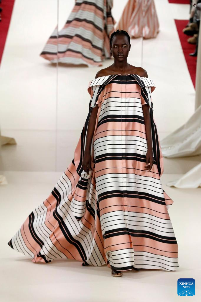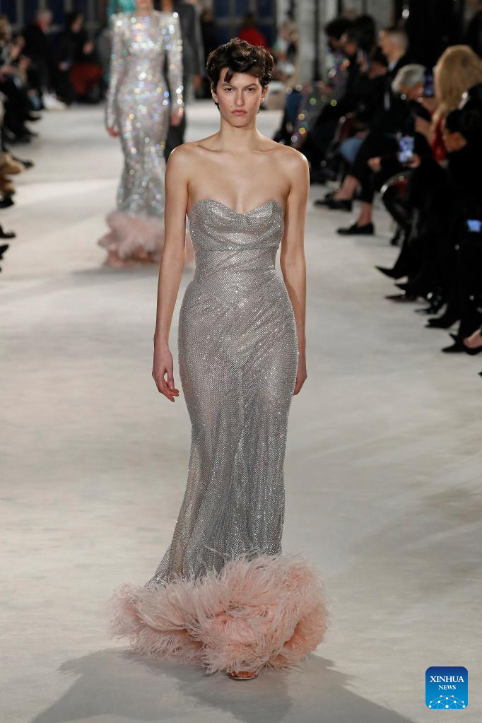 A model presents a creation of Stephane Rolland's Spring/Summer 2022 Haute Couture collections during Paris Fashion Week in Paris, France, Jan. 25, 2022. (Photo by Piero Biasion/Xinhua)