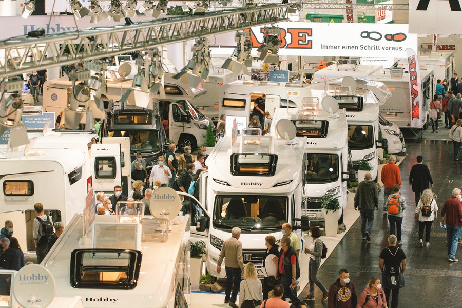 People visit the Caravan Salon, a trade fair for caravans and motorhomes, in Dusseldorf, Germany, on Aug. 28, 2021. (Photo by Tang Ying/Xinhua)