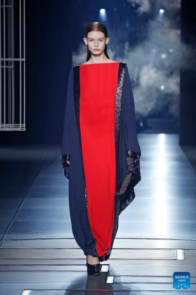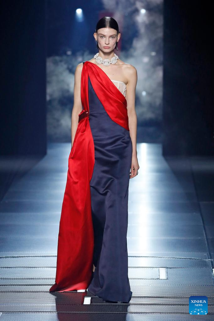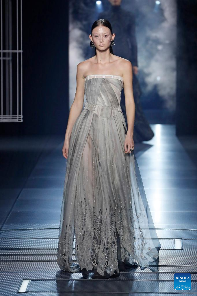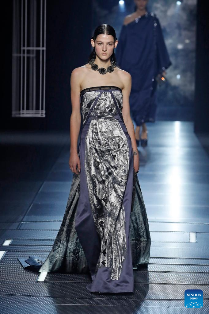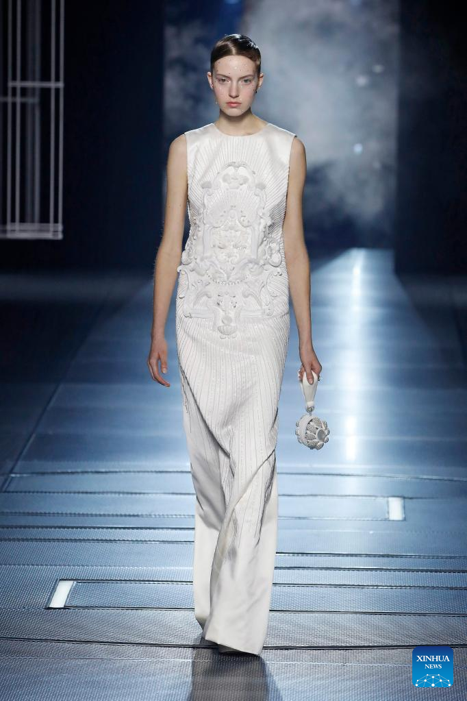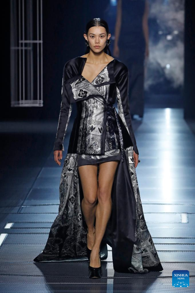 A model presents a creation of Fendi Couture's Spring/Summer 2022 Haute Couture collections during Paris Fashion Week in Paris, France, Jan. 27, 2022. (Photo by Piero Biasion/Xinhua)