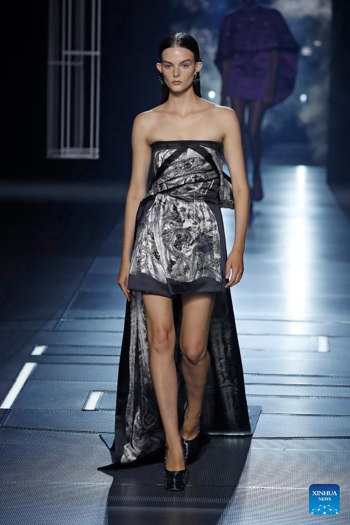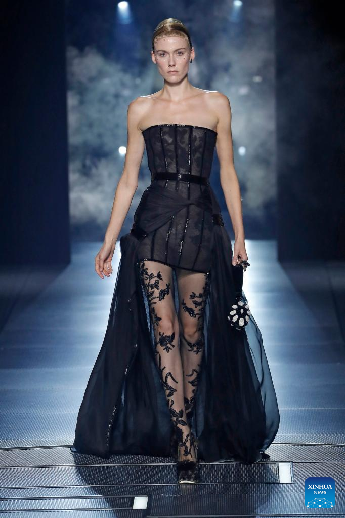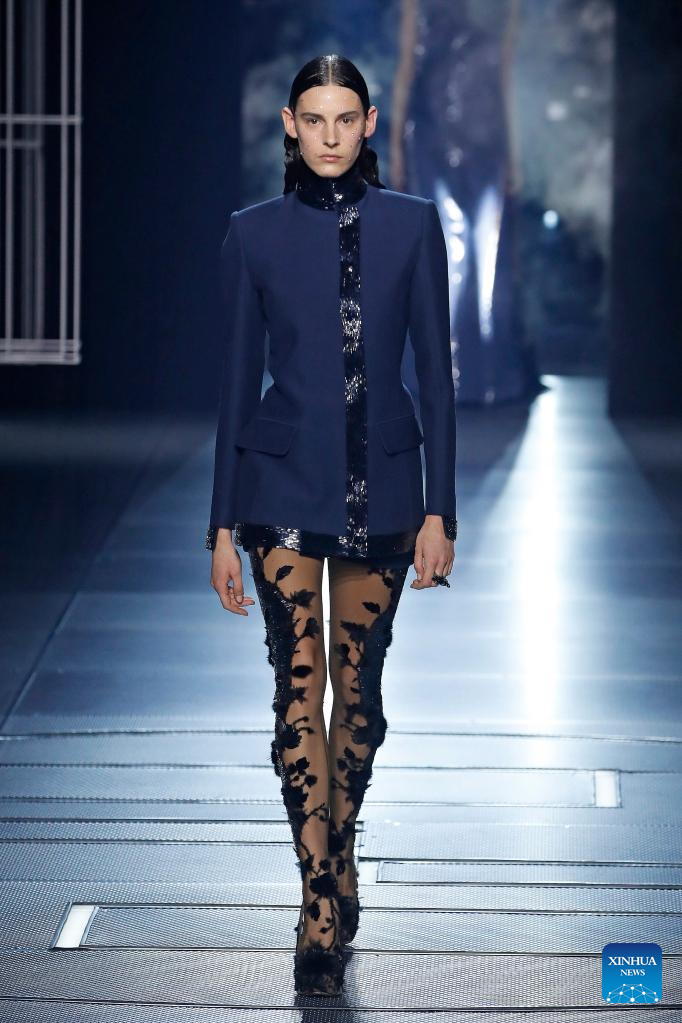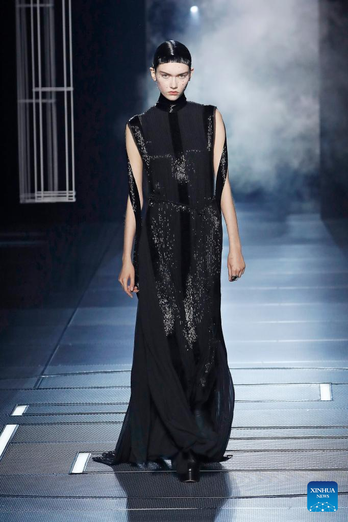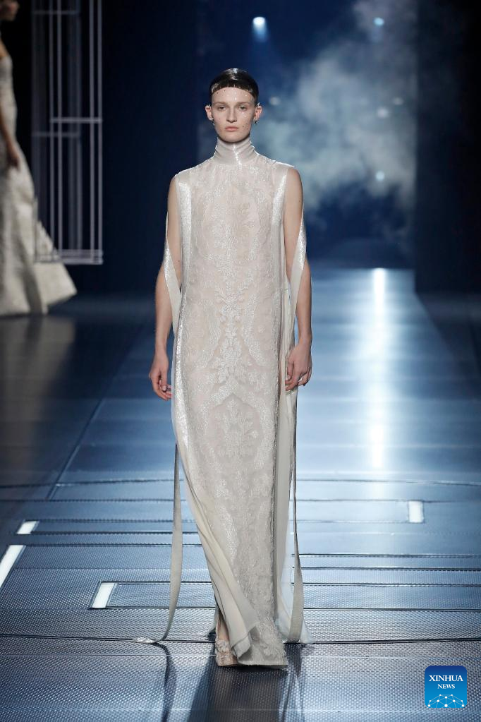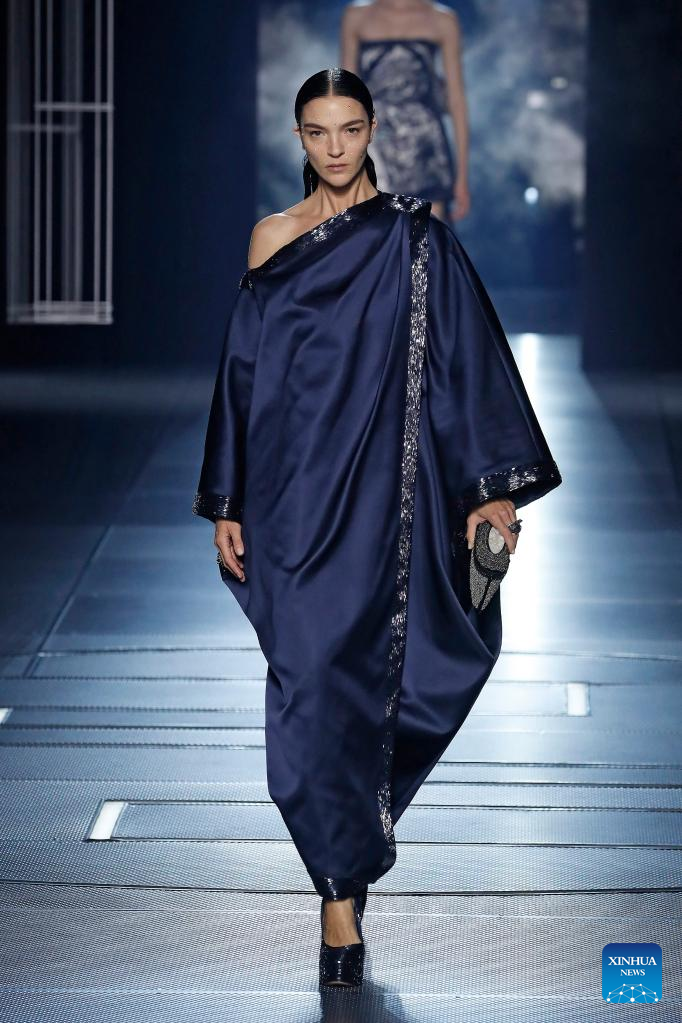 A model presents a creation of Fendi Couture's Spring/Summer 2022 Haute Couture collections during Paris Fashion Week in Paris, France, Jan. 27, 2022. (Photo by Piero Biasion/Xinhua)