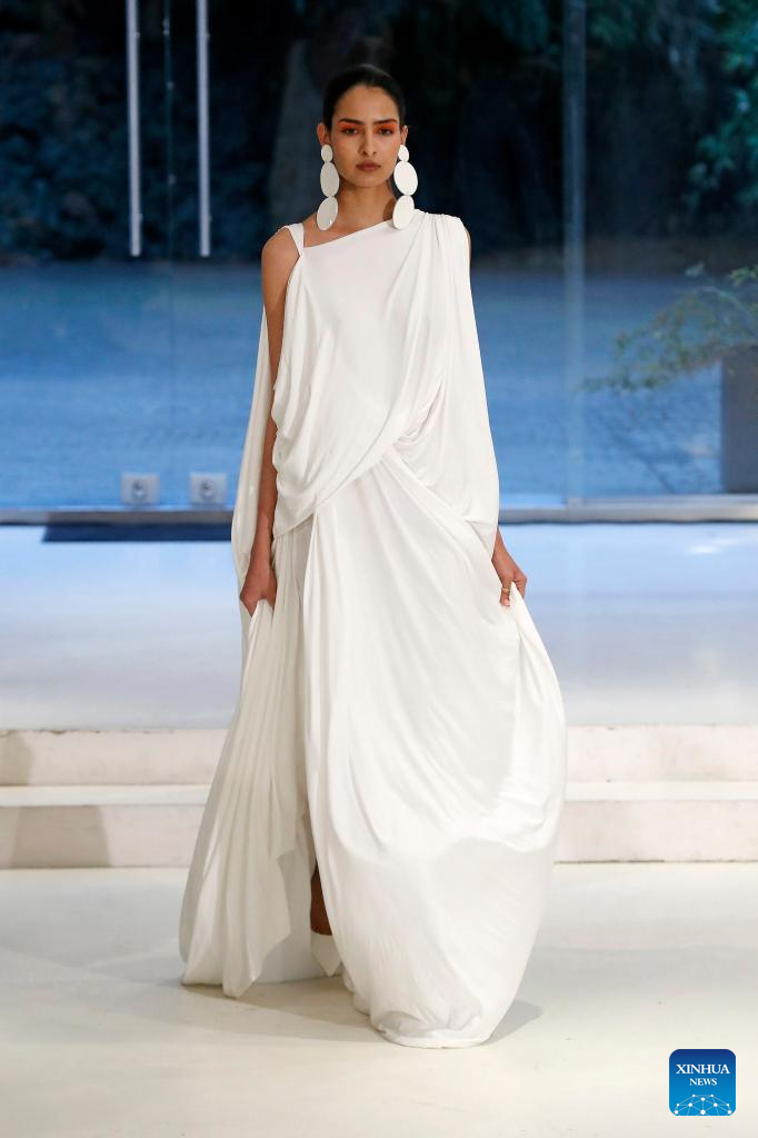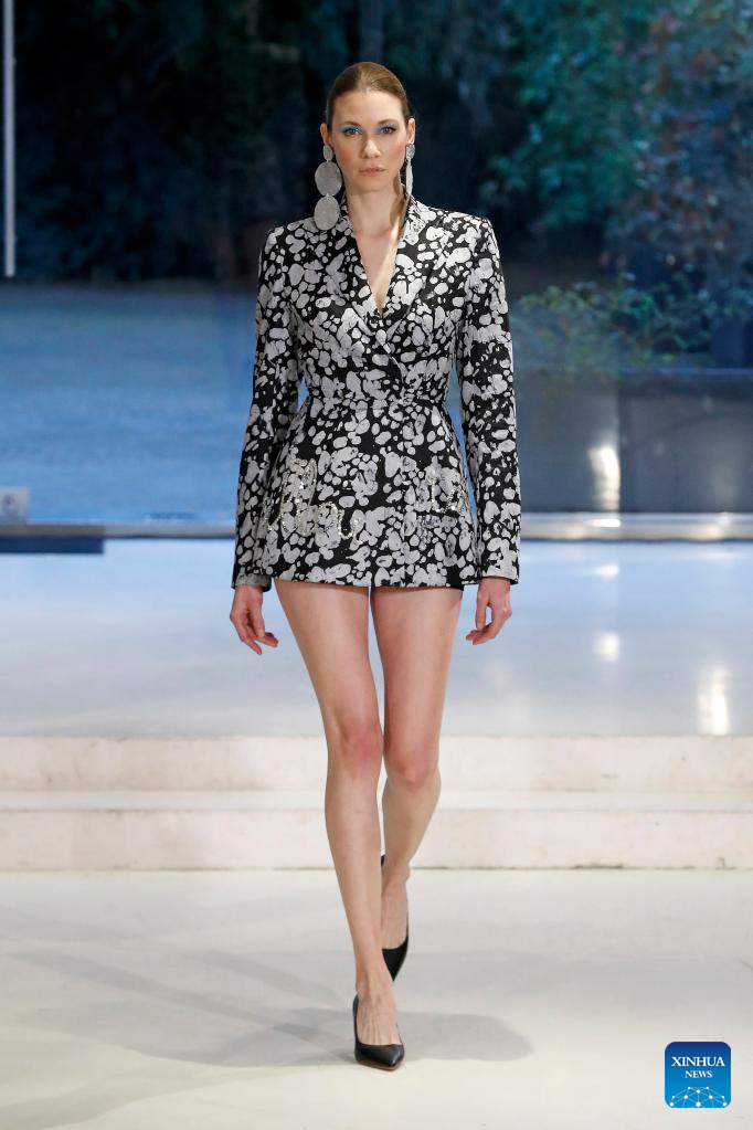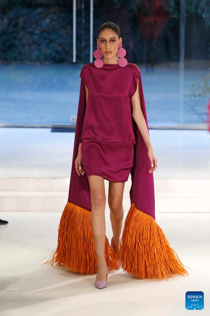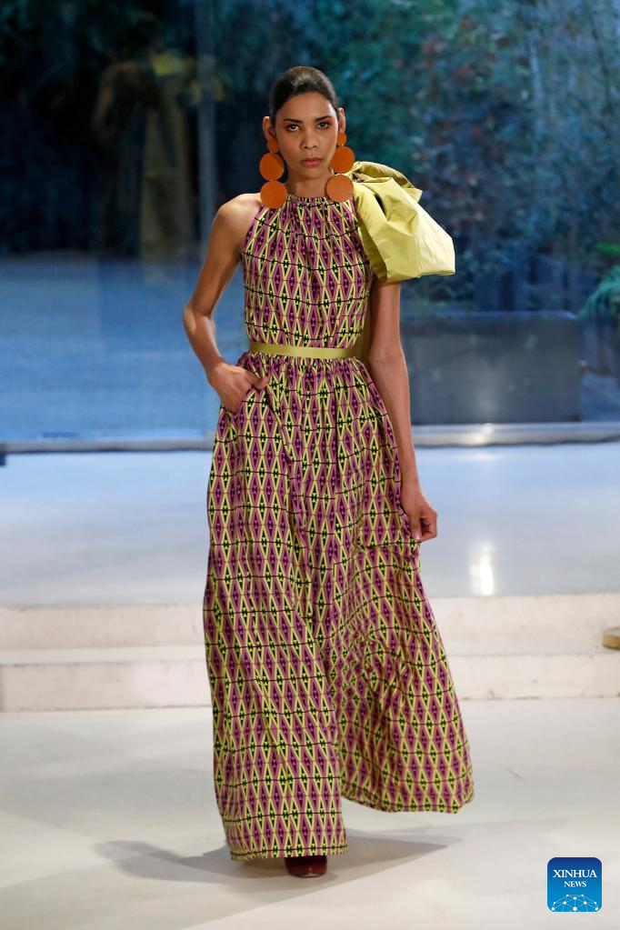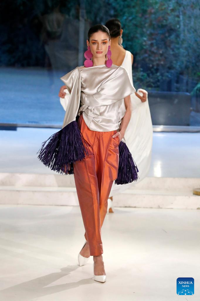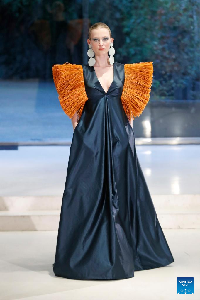 A model presents a creation of Imane Ayissi's Spring/Summer 2022 Haute Couture collections during Paris Fashion Week in Paris, France, Jan. 27, 2022. (Photo by Piero Biasion/Xinhua)