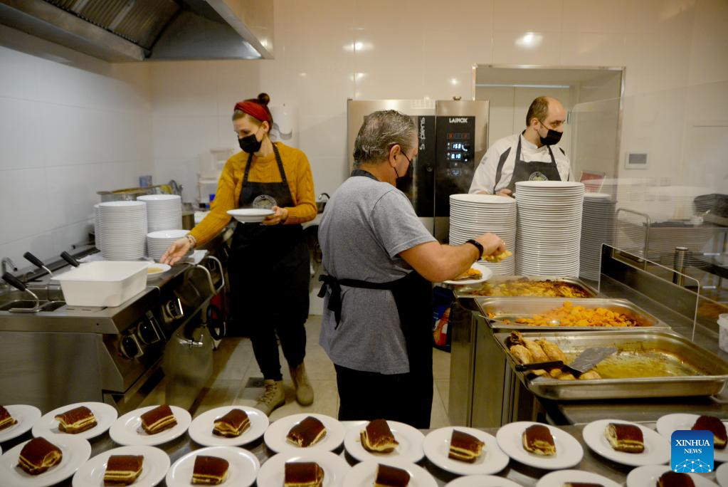 VALLETTA, Jan. 28 (Xinhua) -- Chicken legs, fish fillets, potatoes, carrots, desserts, fruit... At 12 noon sharp, a sumptuous lunch is served to people lining up in a dining room which is located in a 16th century building in Malta's capital Valletta. A sign there says "Wait to be served." They are all homeless and hungry.