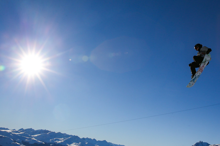 Su Yiming of China competes during the men's snowboard slopestyle semifinal at FIS Snowboard World Cup 2022 in Laax, Switzerland, Jan. 14, 2022. (Xinhua/Zhang Cheng)