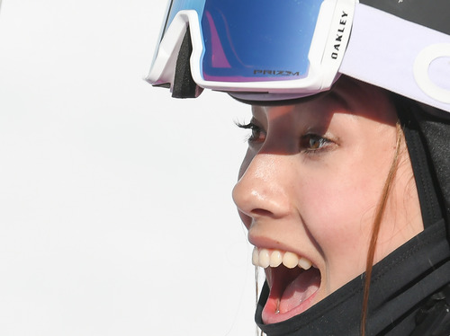 Gu Ailing of China celebrates after the women's freeski big air final of Freestyle Skiing event at the 3rd Winter Youth Olympic Games in Leysin, Switzerland, Jan. 22, 2020. (Xinhua/Lu Yang)
