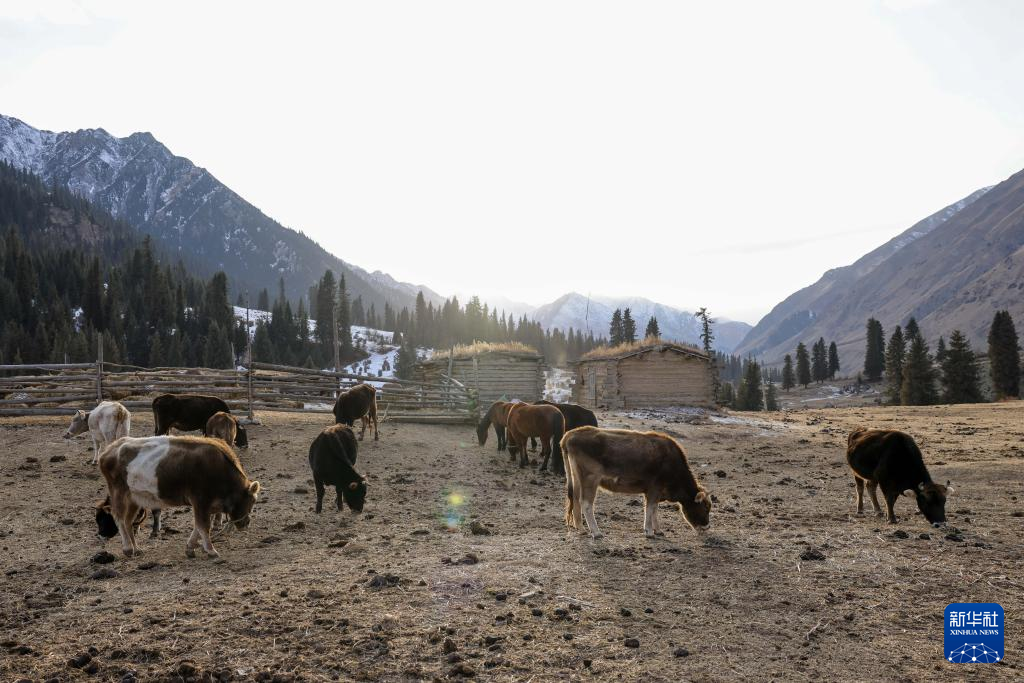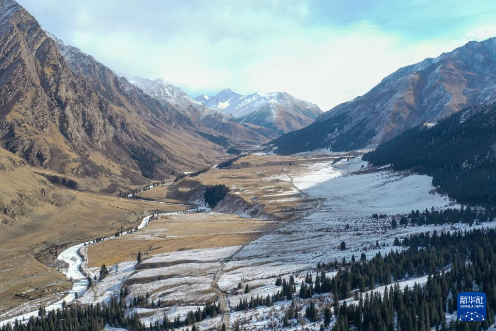 Photo taken on Jan. 24, 2022 shows a view of Akyaz Valley in Zhaosu County, northwest China's Xinjiang Uygur Autonomous Region. Herdsmen in Xinjiang had lived a nomadic life for centuries. Under a housing project to benefit hundreds of households of local herdsmen, local authorities have initiated construction of supporting facilities to help herdsmen's settlement. It helps herdsmen to start a new life with better medical, educational, cultural and health facilities. (Xinhua/Li Zhihao)