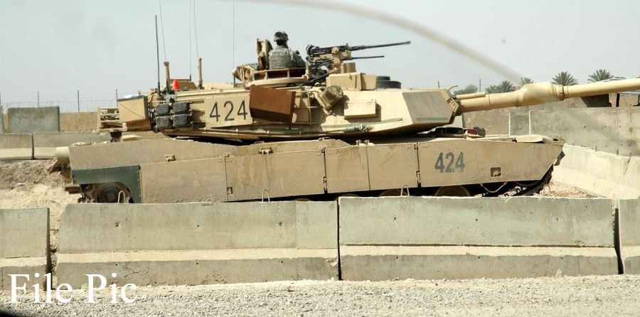 A U.S. military tank guards beside the Baghdad airport highway on March 22, 2006. (Xinhua File photo)