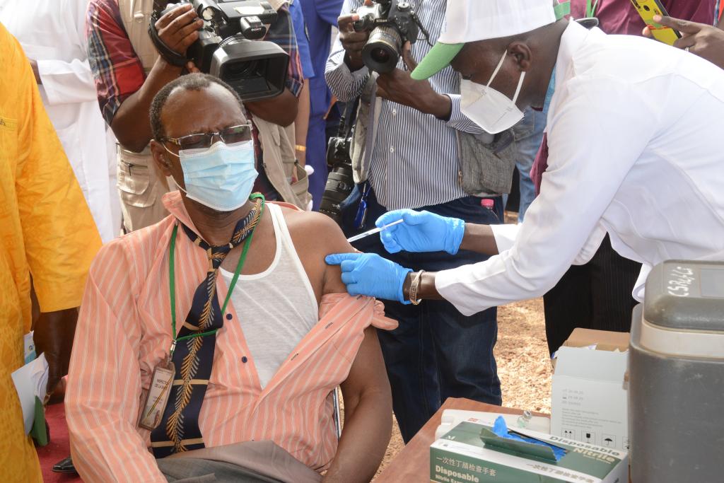 A man receives the COVID-19 vaccine in Bamako, Mali, on March 31, 2021. (Xinhua/Habib Kouyate)