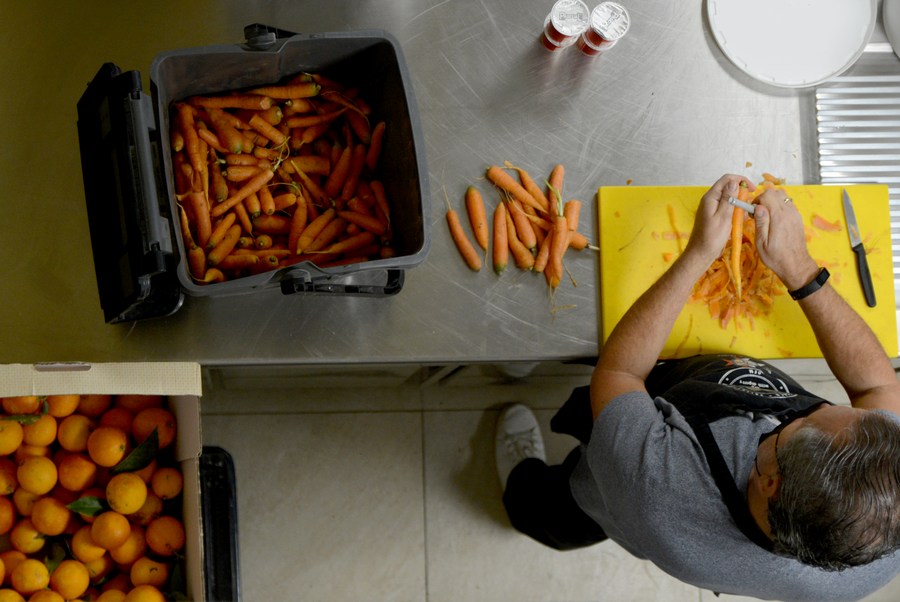 A staff member prepares food in the Soup Kitchen in Valletta, Malta, Jan. 18, 2022. (Photo by Jonathan Borg/Xinhua)