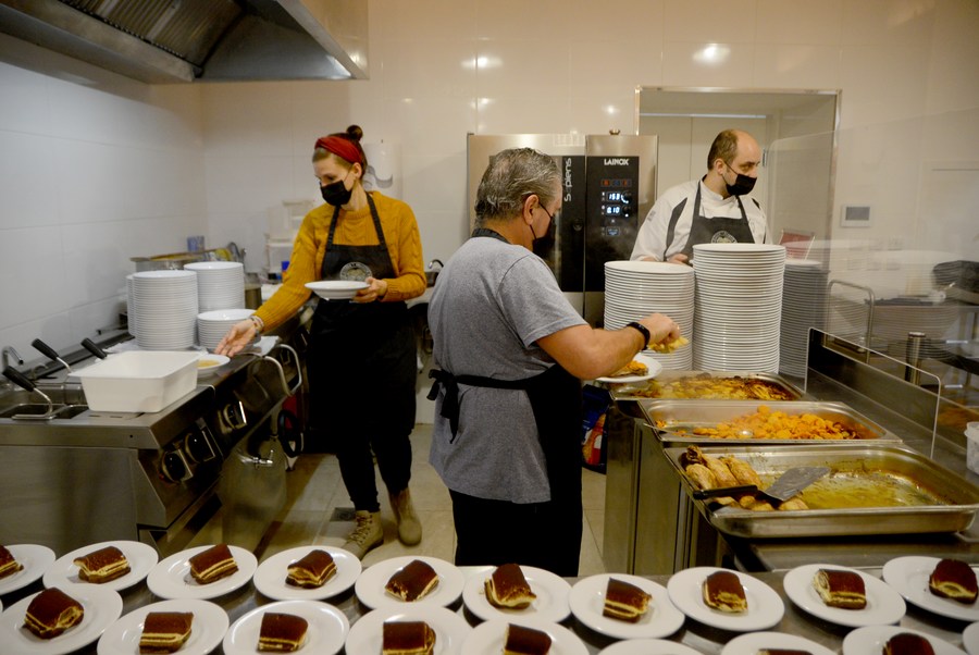 VALLETTA, Jan. 28 (Xinhua) -- Chicken legs, fish fillets, potatoes, carrots, desserts, fruit... At 12 noon sharp, a sumptuous lunch is served to people lining up in a dining room located in a 16th-century building in Malta's capital Valletta. A sign there says "Wait to be served." They are all homeless and hungry.