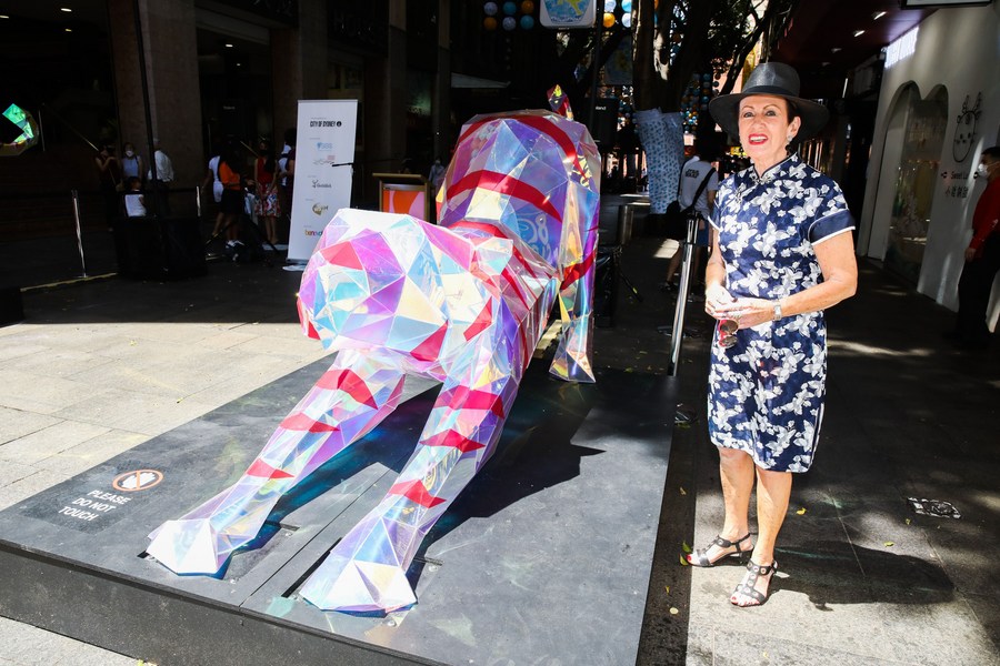 Lord Mayor of Sydney Clover Moore presents in Sydney's Chinatown for the Year of the Tiger event on Jan. 29, 2022. (City of Sydney/Xinhua)