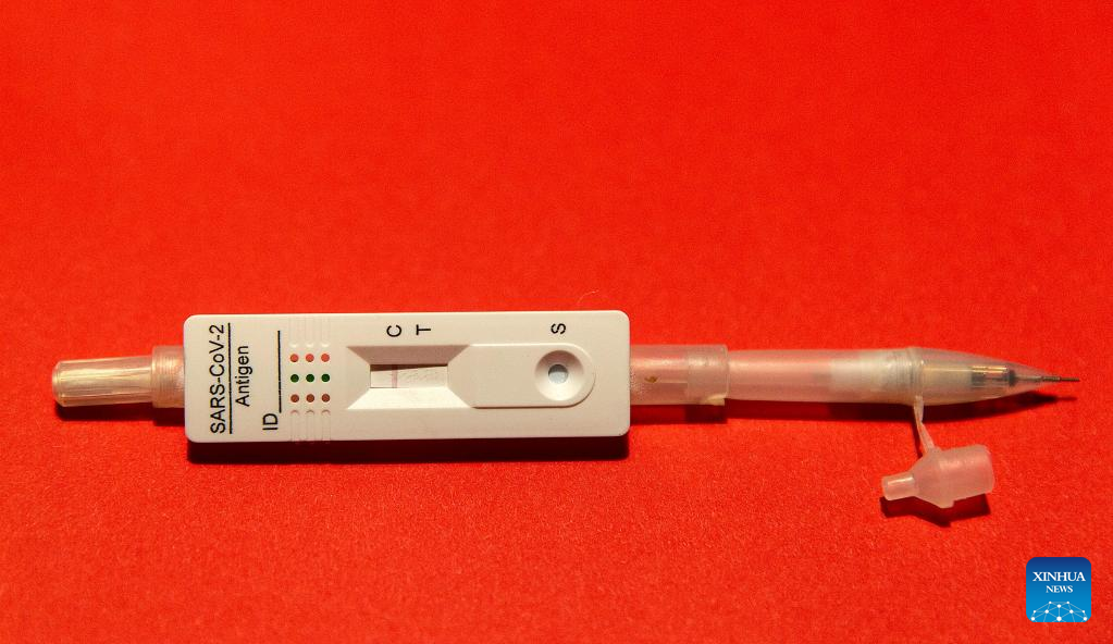 Photo taken on Jan. 22, 2022 shows a mechanical pencil with a self-test for COVID-19 made by Greek mathematics teacher Nikos Kampanis in Athens, Greece. Greek mathematics teacher Nikos Kampanis has his own way to inspire his students: by creating a unique mechanical pencil. As a mechanical pencil lover, he now owns a collection of over 5,000 such pencils. (Xinhua/Marios Lolos)