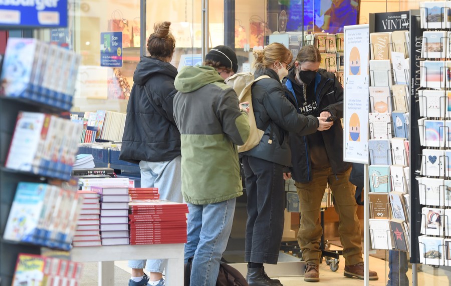 A staff member checks 2G certifications at a bookstore in Vienna, Austria, on Jan. 11, 2022. (Xinhua/Guo Chen)■