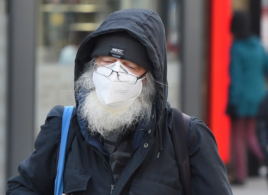 A man wearing a FFP2 mask walks on a street in Vienna, Austria, on Jan. 11, 2022. (Xinhua/Guo Chen)