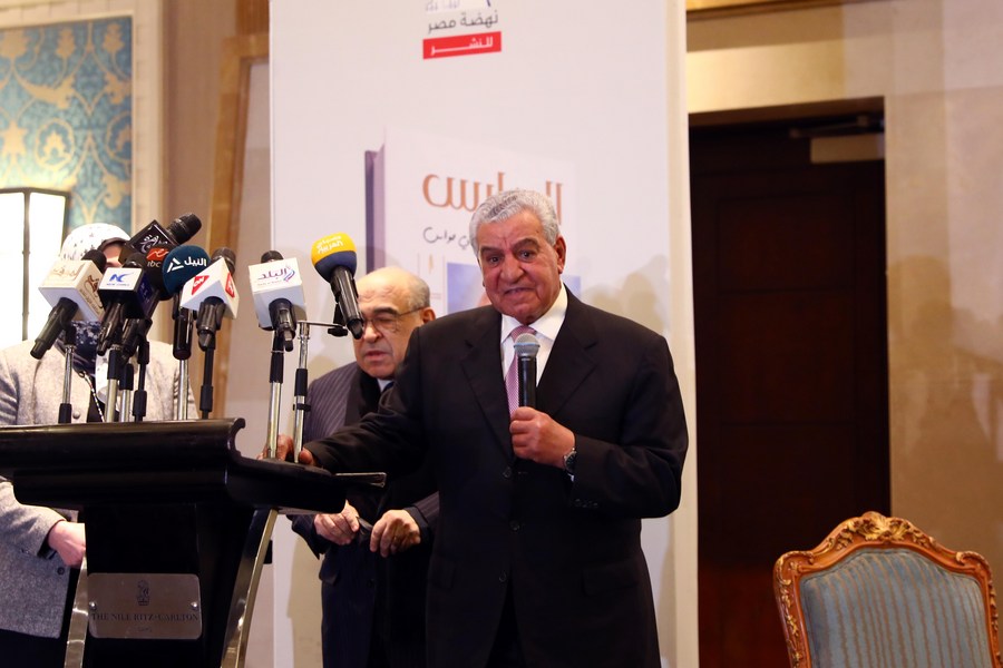 Photo shows Egyptologist Zahi Hawass's newly published autobiography book titled "The Guardian" during a signing ceremony in Cairo, Egypt, on Jan. 29, 2022. (Xinhua/Ahmed Gomaa)