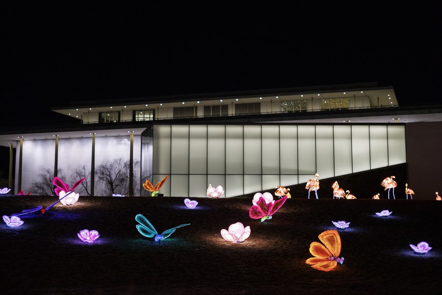 Lanterns are on display celebrating the upcoming Chinese Lunar New Year at the John F. Kennedy Center for the Performing Arts in Washington, D.C., the United States, Jan. 29, 2022. (Photo by Ting Shen/Xinhua)
