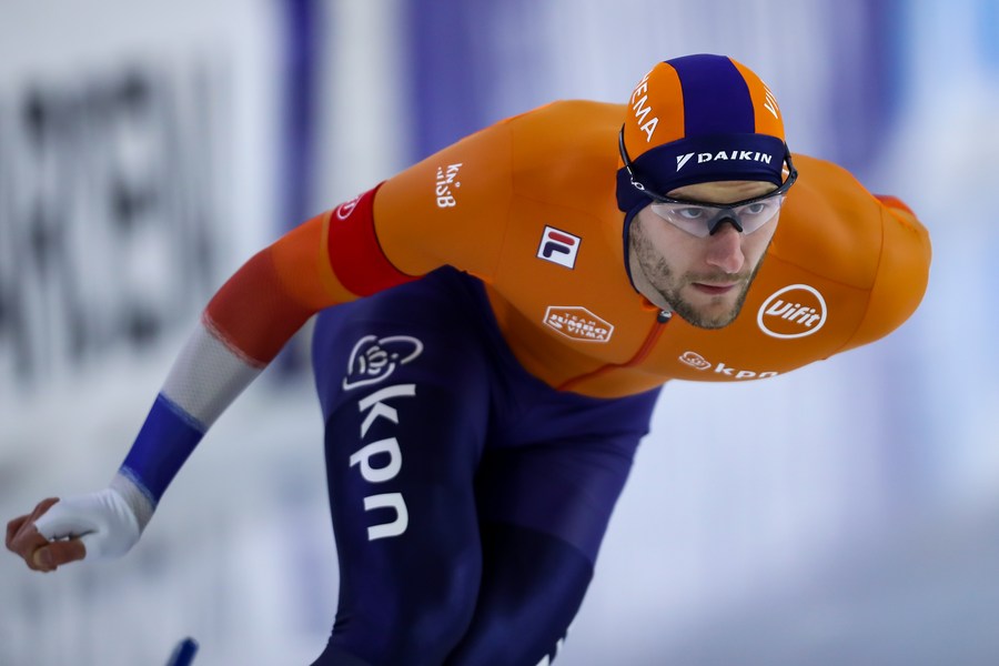 Thomas Krol in action during the Men's 1,500m Division A race of the ISU World Cup Speed Skating Final in Heerenveen, the Netherlands on March 8, 2020. (Xinhua/Zhang Cheng)