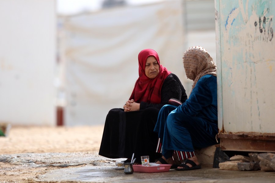 Syrian refugees are seen at a refugee camp in Zaatari, Jordan, on Nov. 19, 2021. (Photo by Mohammad Abu Ghosh/Xinhua)