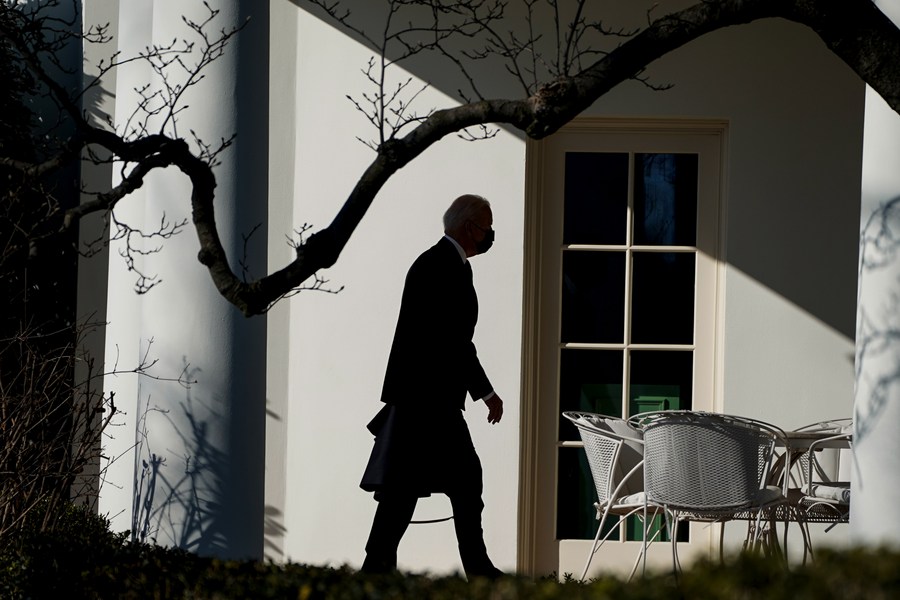 U.S. President Joe Biden arrives at the White House in Washington, D.C., the United States on Jan. 24, 2022. (Photo by Ting Shen/Xinhua)