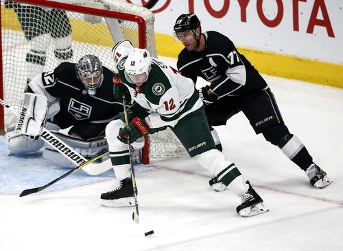 Minnesota Wild's forward Eric Staal (No. 12) was in a NHL game against Los Angeles Kings on April 5, 2018. (Xinhua/Zhao Hanrong)