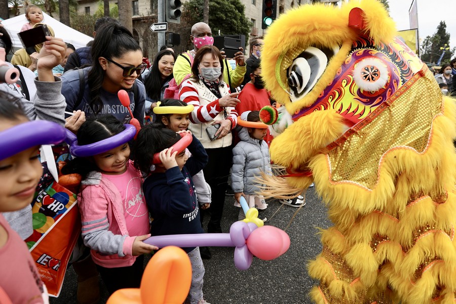 LOS ANGELES, Feb. 1 (Xinhua) -- As Chinese New Year leaps into 2022, the Year of the Tiger, residents of all races are embracing it with joy, despite COVID-19, at a host of large and small celebrations across Southern California.