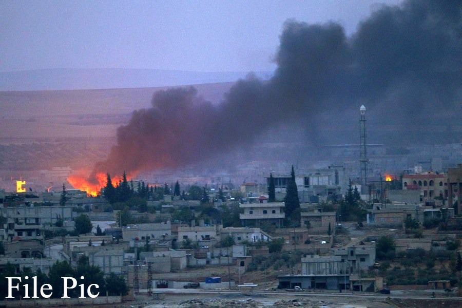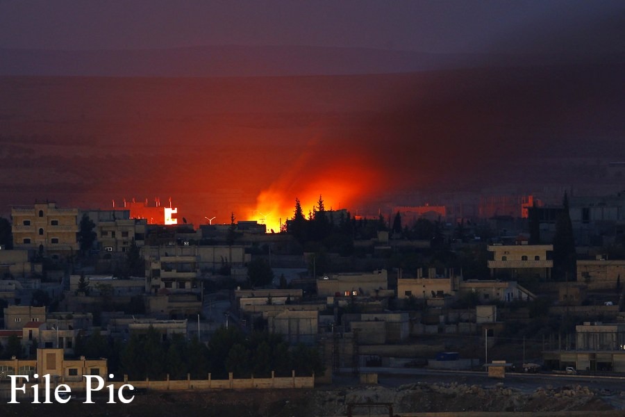 Fire is seen after a U.S. airstrike on positions of Islamic State (IS) terror group in Kobani, Syria, on Oct. 15, 2014. (Xinhua/Cihan)