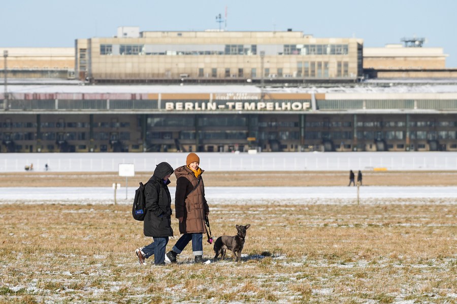 People walk at a park in Berlin, Germany, on Jan. 21, 2022. (Photo by Stefan Zeitz/Xinhua)