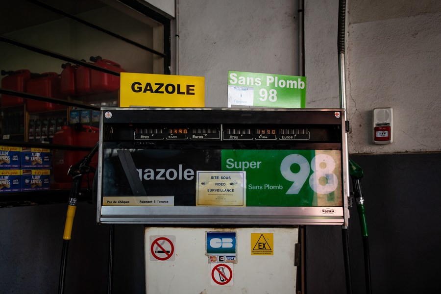 Photo taken on April 9, 2020 shows a gas station in Paris, France. (Photo by Aurelien Morissard/Xinhua)