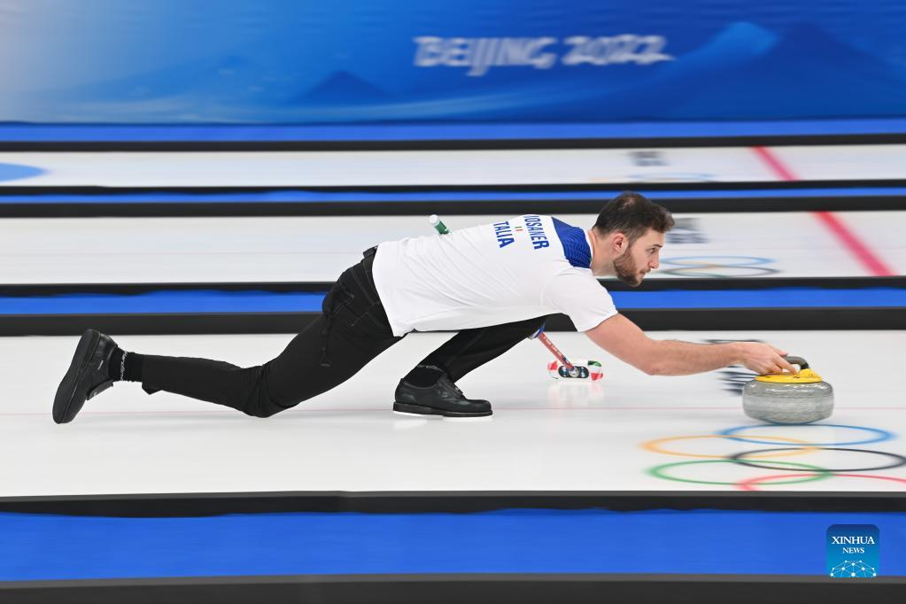 Stefania Constantini of Italy competes during the Beijing 2022 Winter Olympics between the United States and Italy at National Aquatics Centre in Beijing, China, Feb. 3, 2022. (Xinhua/Huang Xiaobang)