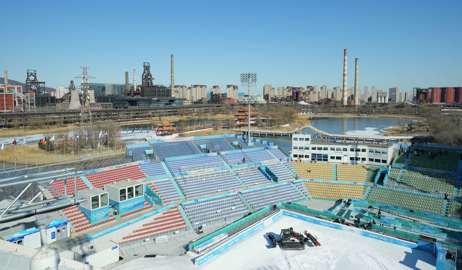 Photo taken on Dec. 28, 2021 shows a view of Big Air Shougang, the venue for Beijing 2022 Winter Olympic Games in Beijing, capital of China. (Xinhua/Tao Xiyi)