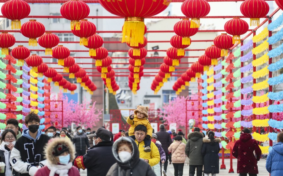 Tourists visit Chuxiu Park in Huai'an City, east China's Jiangsu Province, Feb. 3, 2022. People around China attended various events to celebrate Chinese Lunar New Year. (Photo by Zhao Qirui/Xinhua)