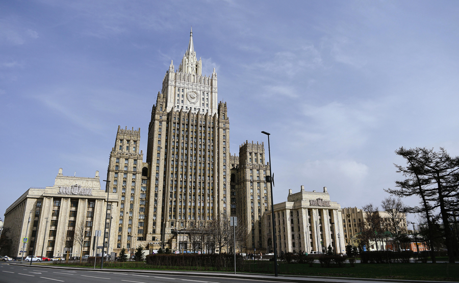 Photo taken on April 16, 2021 shows the Ministry of Foreign Affairs of Russia in Moscow. (Xinhua/Evgeny Sinitsyn)