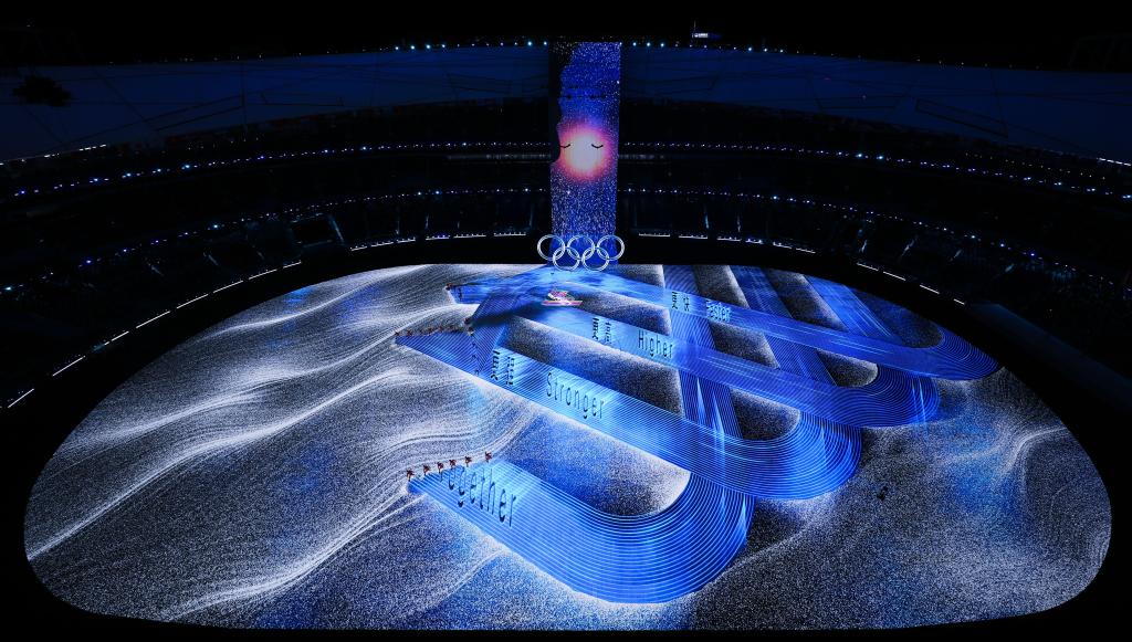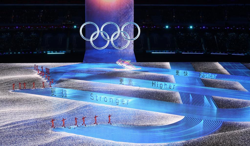Skaters perform as the Olympic motto is displayed during the opening ceremony of the Beijing 2022 Olympic Winter Games at the National Stadium in Beijing, capital of China, Feb. 4, 2022. (Xinhua/Yang Lei)
