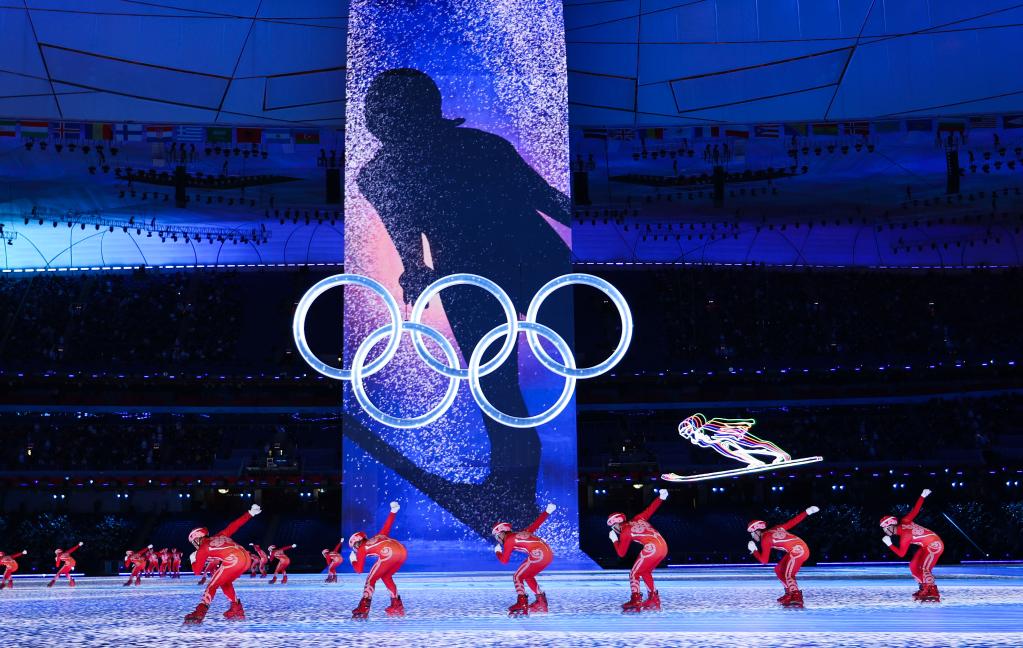 Skaters perform during the opening ceremony of the Beijing 2022 Olympic Winter Games at the National Stadium in Beijing, capital of China, Feb. 4, 2022. (Xinhua/Cao Can)