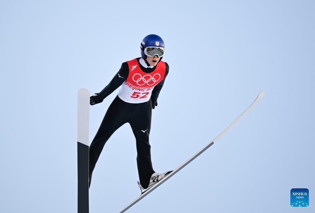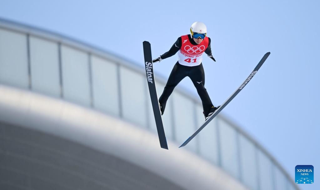 Sato Yukiya of Japan competes during the Ski Jumping men's normal hill individual qualification at the National Ski Jumping Centre in Zhangjiakou, north China's Hebei Province, Feb. 5, 2022. (Xinhua/Jiang Kehong)