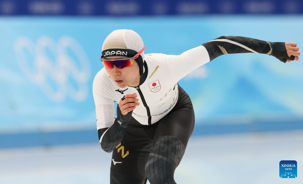 Takagi Miho of Japan competes during the women's 3,000m final of speed skating at the National Speed Skating Oval in Beijing, capital of China, Feb. 5, 2022. (Xinhua/Ding Xu)