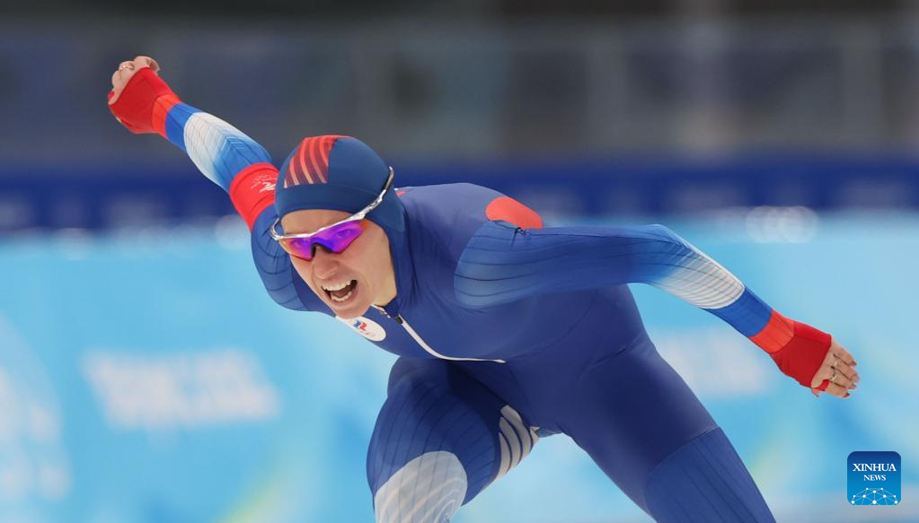 Martina Sablikova of the Czech Republic competes during the women's 3,000m final of speed skating at the National Speed Skating Oval in Beijing, capital of China, Feb. 5, 2022. (Xinhua/Ding Xu)