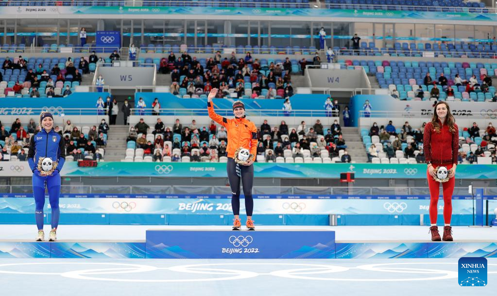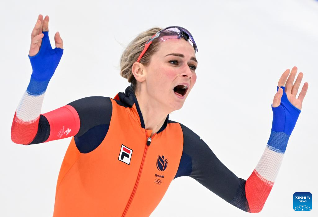 BEIJING, Feb. 5 (Xinhua) -- Dutch speed skater Irene Schouten notched a gold medal with a new Olympic record in the women's 3,000m at the Beijing Winter Olympics here on Saturday.