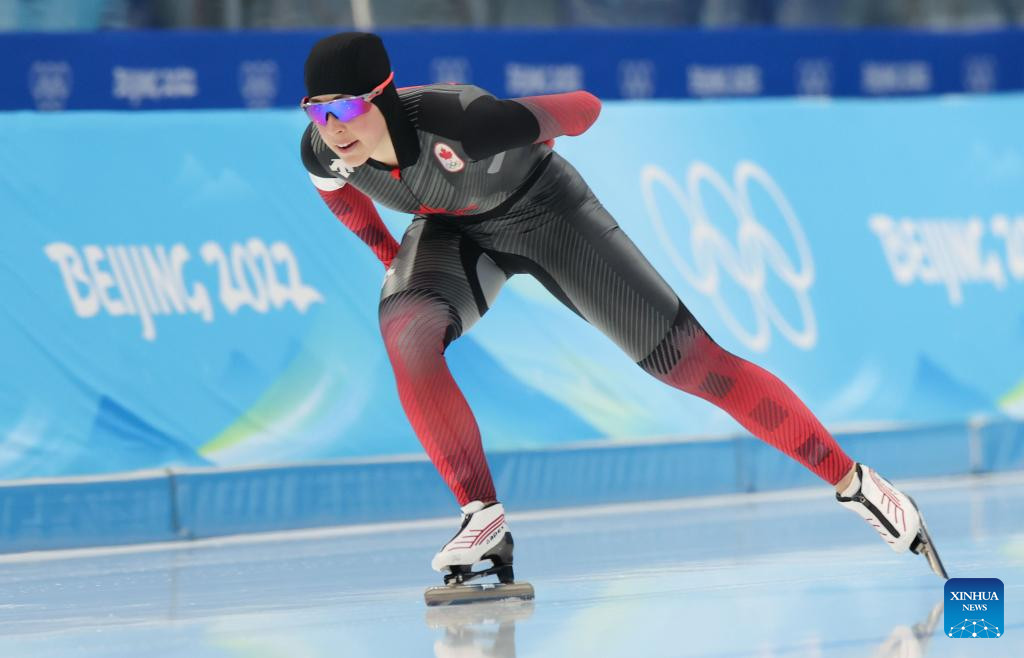 Valerie Maltais of the Canada competes during the women's 3,000m final of speed skating at the National Speed Skating Oval in Beijing, capital of China, Feb. 5, 2022. (Xinhua/Ding Xu)