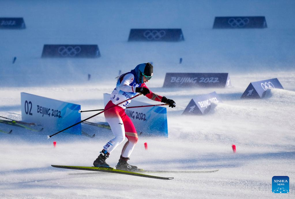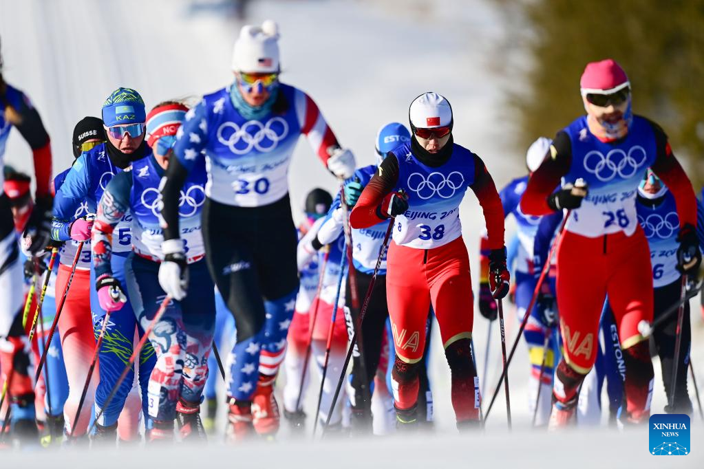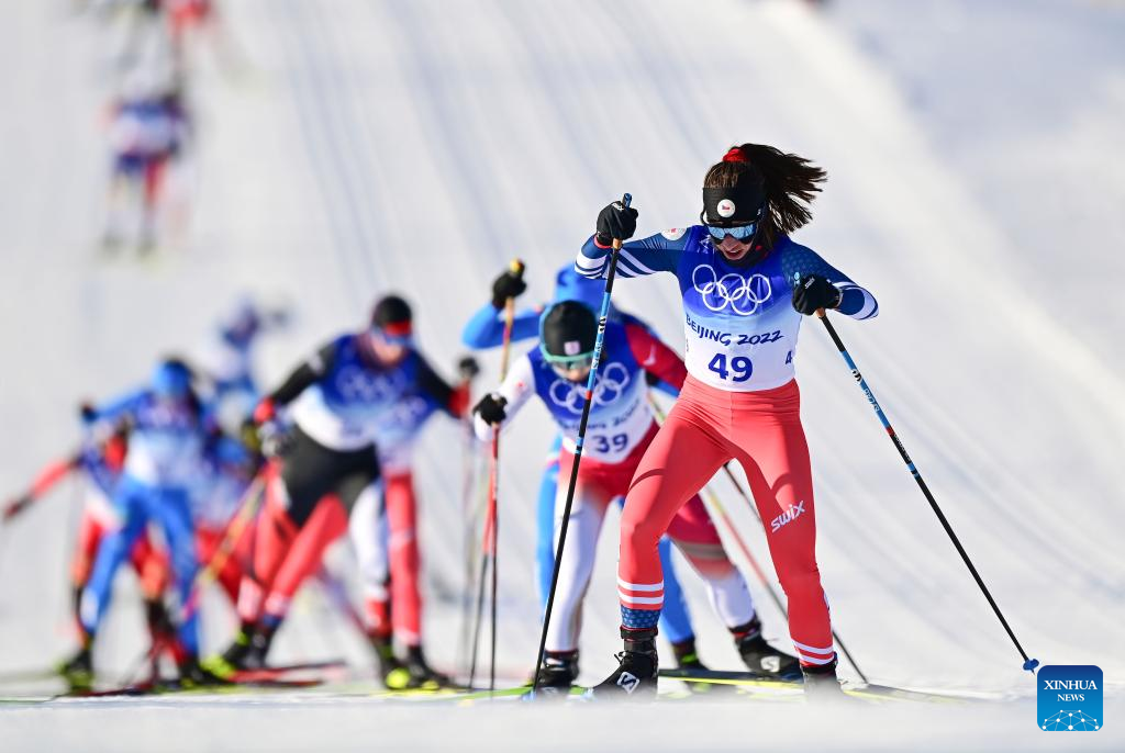 Athletes compete during the Cross-Country Skiing Women's 7.5km + 7.5km Skiathlon at National Cross-Country Skiing Centre in Zhangjiakou, north China's Hebei Province, Feb. 5, 2022. (Xinhua/Zhang Hongxiang)