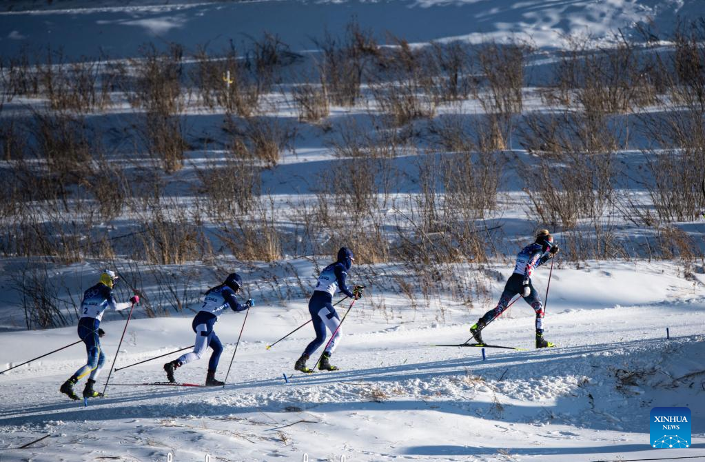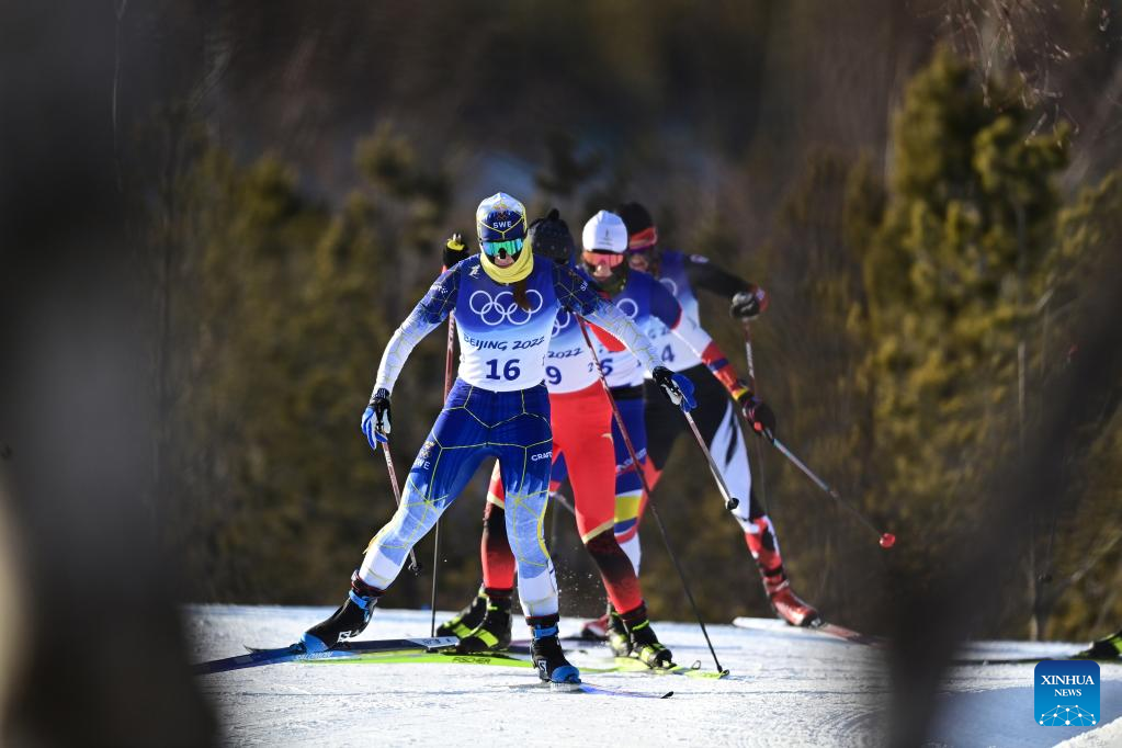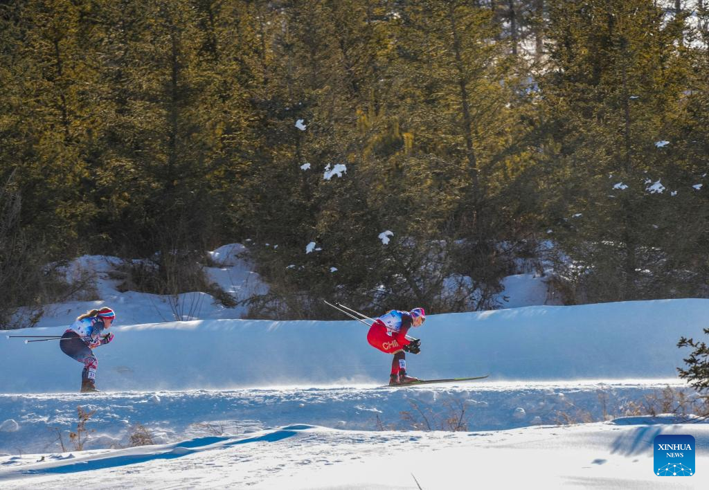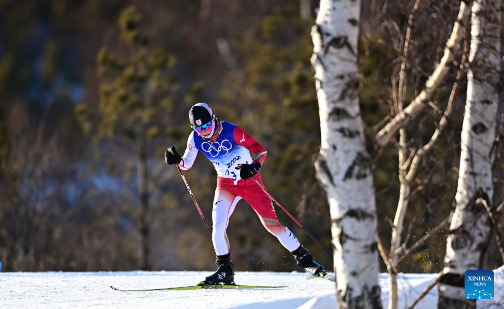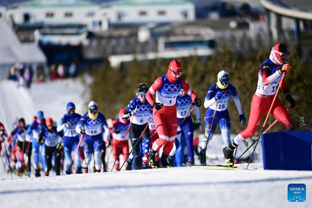 Athletes compete during the Cross-Country Skiing Women's 7.5km + 7.5km Skiathlon at National Cross-Country Skiing Centre in Zhangjiakou, north China's Hebei Province, Feb. 5, 2022. (Xinhua/Mu Yu)