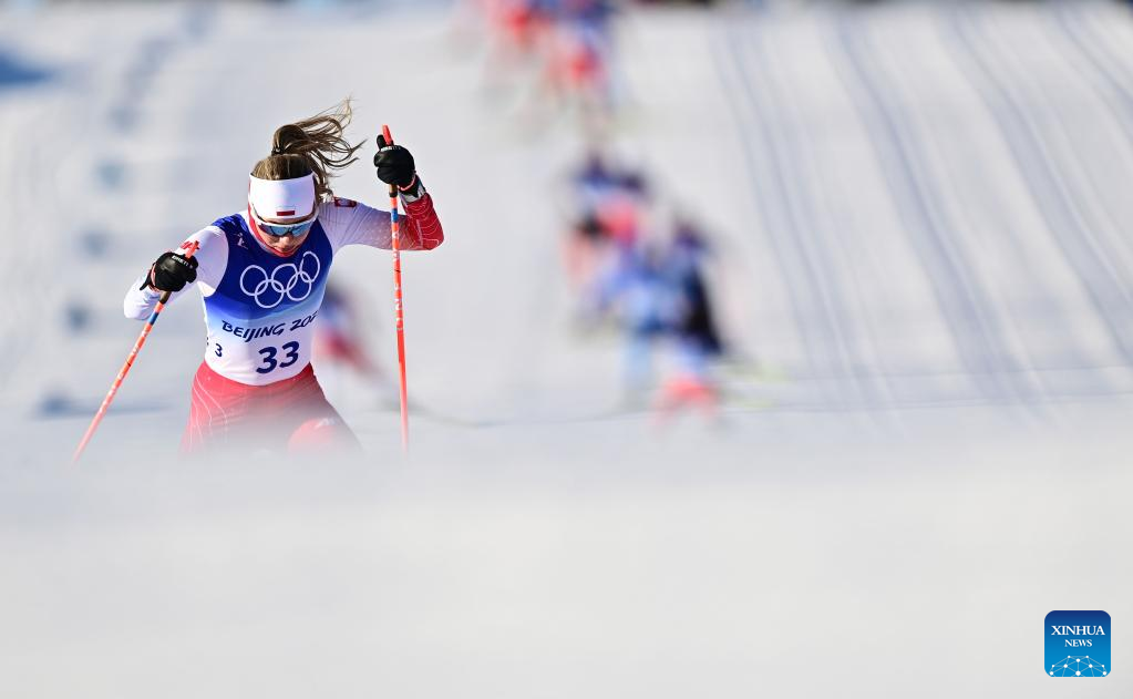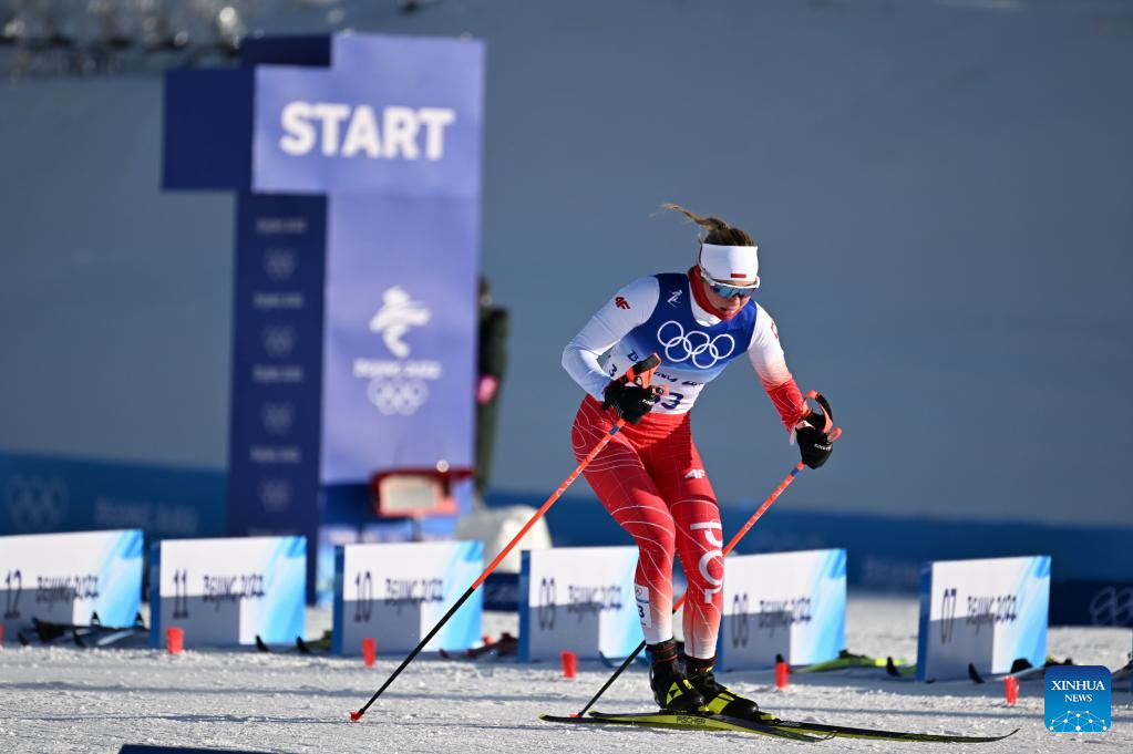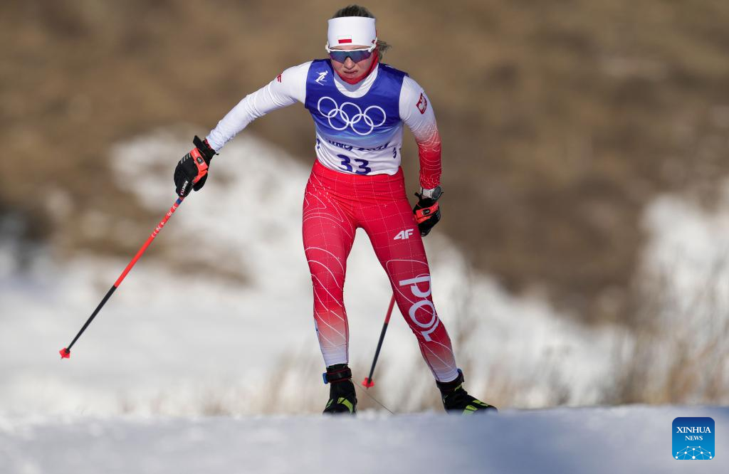 Izabela Marcisz of Poland competes during the Cross-Country Skiing Women's 7.5km + 7.5km Skiathlon at National Cross-Country Skiing Centre in Zhangjiakou, north China's Hebei Province, Feb. 5, 2022. (Xinhua/Zhang Hongxiang)