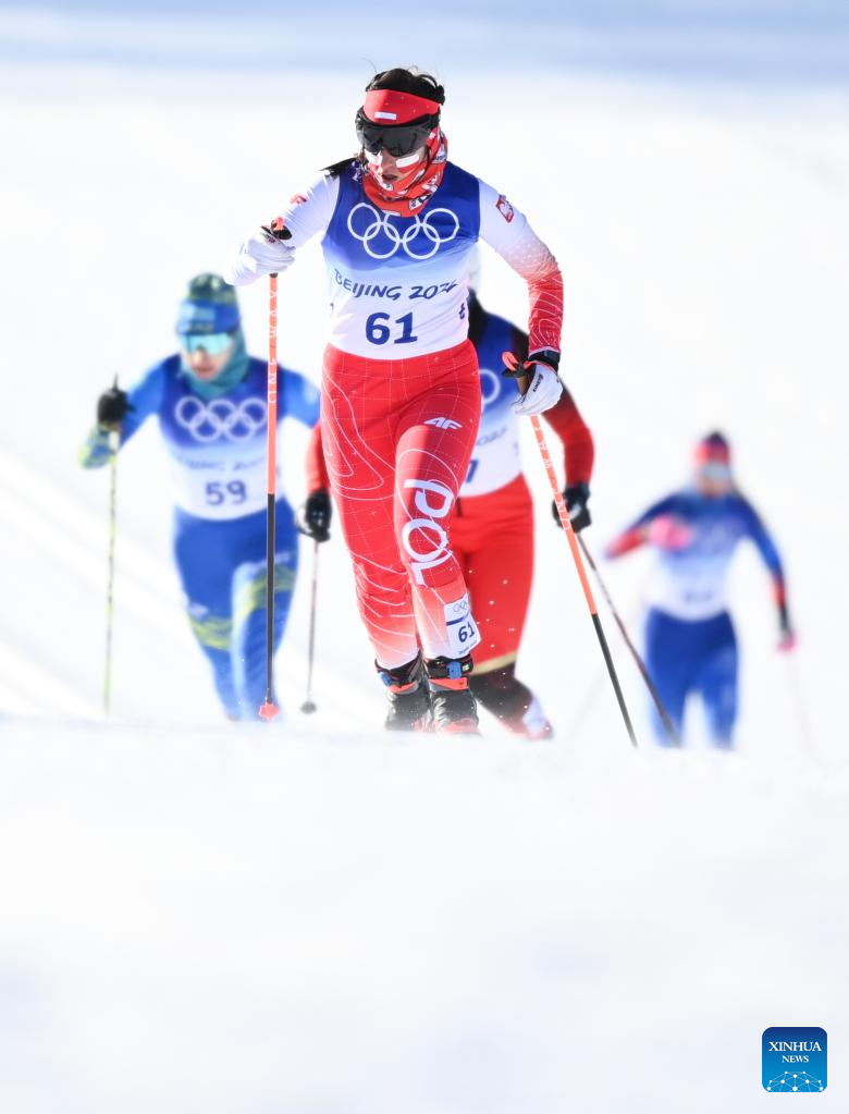 Magdalena Kobielusz of Poland competes during the Cross-Country Skiing Women's 7.5km + 7.5km Skiathlon at National Cross-Country Skiing Centre in Zhangjiakou, north China's Hebei Province, Feb. 5, 2022. (Xinhua/Zhang Hongxiang)